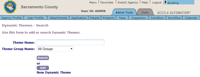If there is a need to delete a dynamic theme, instead of deleting a dynamic theme, set its status to Disabled it so it remains in Civic Platform in case you want to use it at a later date.