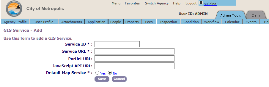 GIS Service configuration fields in Civic Platform Classic Administration